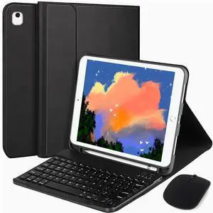 WthGrop for 10.2 inch&10.5 inch iPad 9th Gen/8th Gen/7th Generation Case with Keyboard and Mouse, for iPad Pro 10.5"/iPad Air 3rd Gen Wireless Keyboard Cover with Mouse, Pencil Holder, (Matt Black)
