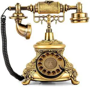 WICHEMI Vintage Phone Retro Rotary Dial Phones Landline Telephone Old Fashion Antique Phone Old School Telephones for Home Office Cafe Bar Star Hotel Decor (Golden)