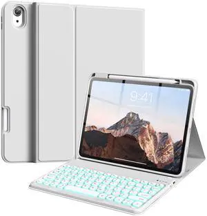 aoub Keyboard Case for iPad 11th Generation 11 Inch 2025 (A16), 10th Generation 2022 10.9 Inch with Pencil Holder - 7 Colors Backlit Wireless Detachable Folio Keyboard - Gray