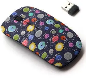 CJCBROES 2.4G Wireless Mouse with Cute Pattern Design for All Laptops and Desktops with Nano Receiver - Cute Solar System