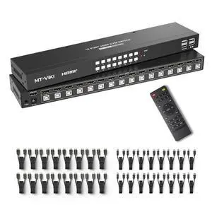 MT-VIKI 16 Port VGA KVM Switch+ 2 Packs 16ft 2-in-1 USB VGA KVM Cable