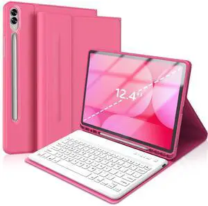 Keyboard Case for Galaxy Tab S9 FE+/ S9+ /S10+ 12.4 Inch, Magnetic Detachable Bluetooth Keyboard with Pen Holder for Samsung Tab S10+ Plus/S9+ Plus/S9 FE+ Plus 5G 12.4", Pink