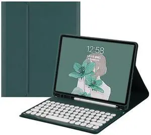 HENGHUI Keyboard Case for Galaxy Tab S9 FE+ / Tab S10+ / Tab S9+ / Tab S8+ /S7+/S7 FE 12.4 inch Detachable Magnetic Color Keyboard Cover Cute Round Key,MintGreen