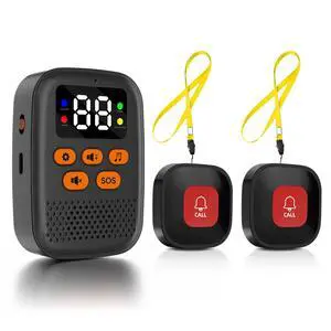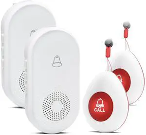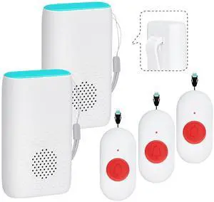 LIOTOIN Wireless Caregiver Pager Call Button Alert Button Call Bell for Elderly Patients at Home Nurse Alert System 2 Waterproof Transmitters 1 Portable Receiver 2 plugin Receiver