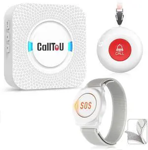 CallToU Caregiver Pager Wireless Call Button Nurse Alert System 500+ Feet for Home/Elderly/Patient/Disabled 1 Plugin Receiver 1 Waterproof Transmitter 1 Watch Transmitter
