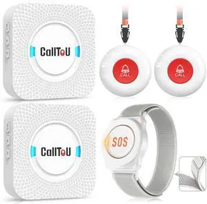 CallToU Caregiver Pager Wireless Call Button Nurse Alert System 500+ Feet for Home/Elderly/Patient/Disabled 2 Plugin Receiver 2 Waterproof Transmitter 1 Watch Transmitter