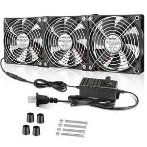 Neukniy 3X 120mm Computer Fan with AC Plug, AC 110V 120V 220V 240V Cabinet Cooling Fan with Speed Controller, Cooling for Windows, Plant Cabinet, Crawl Space, Basement, Laundry Room, Garage, Attic
