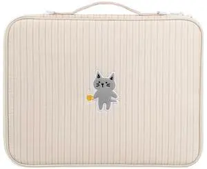 kimhachan Stripe Kitty Laptop Pouch with Handle ^^ Vintage-Inspired Fabric Cute Notebook Case Sleeve for women (Pink x Beige, 13 inch)