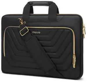 MOSISO Laptop Shoulder Bag,15-15.6 inch Computer Bag Compatible with MacBook Pro 16, HP, Dell, Lenovo, Asus Notebook,Messenger Briefcase with Front Inverted Trapezoid Quilted Pocket, Black