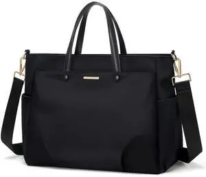 Laptop Tote Bag 15.6 Inch, Computer Shoulder Bag Large Work Tote Bag for Women, Laptop Carrying Case Stylish Handbag for Business Travel (Black)