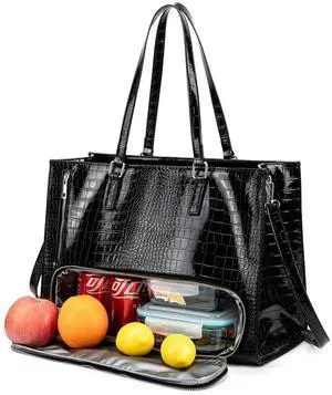 Prokva Teacher Tote Bag with Laptop Compartment, Large Teacher Utility Bag for Women Work and Teacher Supplies, Pink (Empty Bag, Patent Design)