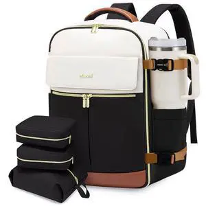LOVEVOOK Travel Backpack for Women, TSA Carry On Backpack Flight Approved Luggage, 40L Water Resistant Personal Item Daypack Large Weekender Bag fit 17 inch Laptop with 3 Cubes, Beige-black-brown