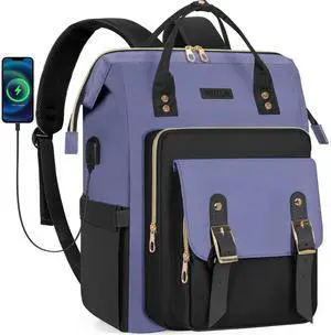 LOVEVOOK Laptop Backpack for Women 15.6 Inch, Travel Backpack with USB Charging Port Large Capacity Laptop Bag, Waterproof Bag for Business College Airline Approved Work Backpack(Purple Blue)