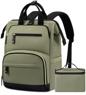 LOVEVOOK Laptop Backpack for Women with Giant Tumbler Holder Pocket,18.4 inch School College Book Bag Nurse Teacher Backpack,Work Travel Backpack Laptop Computer Bag,Olive green-Bean green-Kelp green