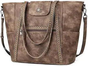 FADEON Large Laptop Tote Bag for Women Designer Leather Laptop Bag Fashion Travel Backpack Purse Shoulder Handbag Coffee