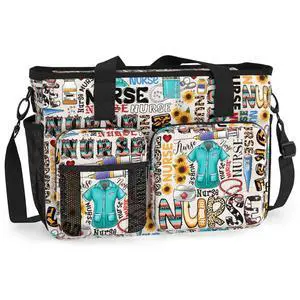 84hoods Nurse Bag for Work With Large Compartments, Padded Laptop Storage and Multiple Pockets - Waterproof Shoulder Tote Bag - Sunflower Typography