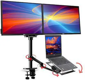 Height Adjustable Laptop Monitor Stand - Compatible with 13 to 17.3 inch Laptops, Holds 2 Monitors 11 to 27 inch with Vesa, Black