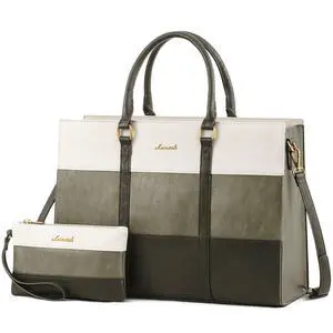 LOVEVOOK Laptop Bag for Women, 15.6 Inch Laptop Tote Bag, Vintage Leather Work Bags for Women, Waterproof Computer bag with Clutch Purse, Large Capacity Briefcase, Business Office Bag