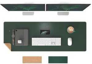 RENMTURE Dual-Sided Mouse Pad, Natural Cork & PU Leather Large Desk Pad for Office and Home Work, Desk Protector Non-Slip, Waterproof, Easy Clean (Dark Green, 47"x17")
