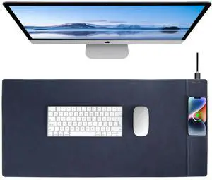 Hi-HONX Magnetic Wireless Charging Desk Pad, Office Desk Mat with Wireless Charger, Waterproof and Scratch-Resistant Large Mouse Mat, Microfiber Leather Mouse Pad for Office and Home Use, Blue Color