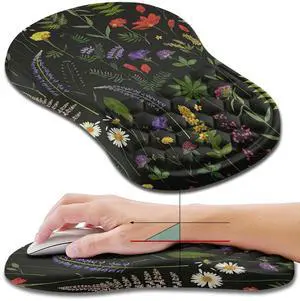 Hokafenle Ergonomic Mouse Pad Wrist Support, Wrist Rest Mousepad for Carpal Tunnel Pain Relief with Integrated Memory Foam Slope Massage Bulge (11.8x7.9 inch,Flowers