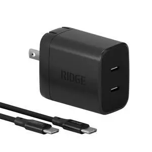 RIDGE 45W Power Adapter Kit, Dual USB-C Ports, Laptop-Grade Power with Complete Cable Kit Included - Matte Black