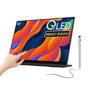 EHOMEWEI Q3 Pro Portable Touchscreen Monitor with Stylus, 4K 60Hz 16" QLED 3840 * 2400, 600 Nit Brightness, 16:10 Widescreen Eye Care 100% DCI-P3, Laptop/PC/Phone/Game Console Extender Screen Display