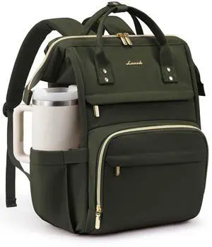 LOVEVOOK Laptop Backpack for Women with Giant Tumbler Holder Pocket,18 inch Waterproof Travel Backpack Purse Computer Laptop Bag,Professional Work College Nurse Teacher Backpack Daypack,Olive Green