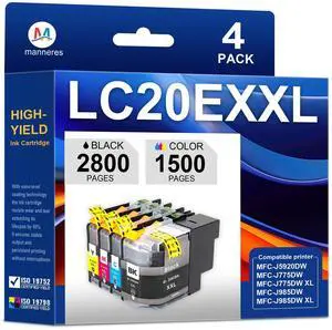 LC20EXXL Super High Yield Ink Cartridges Replacement for Brother LC20E LC20E XXL Ink Cartridges for MFC-J5920DW MFC-J775DW MFC-J775DWXL MFC-J985DW MFC-J985DWXL Printer 4-Pack Black Cyan Magenta Yellow
