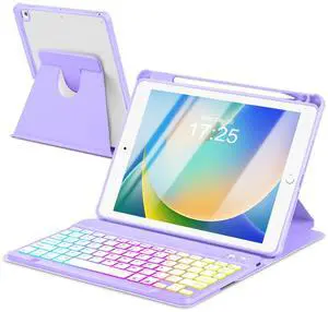 Case with Keyboard for iPad 9th 8th 7th Generation 10.2 inch,7 Rainbow Backlit Detachable Wireless Keyboard Rotatable Magnetic Cover with Pencil Holder for iPad Air 3rd Gen/Pro 10.5 Purple