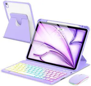 Case with Keyboard Mouse for iPad Air 11 inch M4 M3 M2/ Air 10.9 5th 4th Generation,Rainbow Backlit Detachable Keypad Rotatable Magnetic Cover with Pencil Holder for iPad Air 4 5 6 Gen Purple