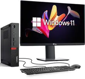 Lenovo M700 Desktop Mini PC, Intel Core i5-6th, 16GB DDR4 RAM, 256GB SSD, Wi-Fi, Wireless Keyboard and Mouse, 24 Inch LED Monitor, Windows 11 Pro, Offices and Casual Computing, Desktop PC (Renewed)
