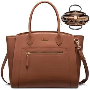LOVEVOOK Laptop Tote Bag for Women, 15.6 Inch Large Capacity Work Bags Briefcase Purse with Multiple Pockets & Large Bottle Holder, Vegan Leather Business Office Computer Bag for Teacher, Brown
