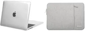 MOSISO Compatible with MacBook Air 13.6 inch Case 2022 2023 A2681 M2, Plastic Hard Shell Case Cover & Polyester Vertical Sleeve Bag with Pocket, Crystal Clear&Gray