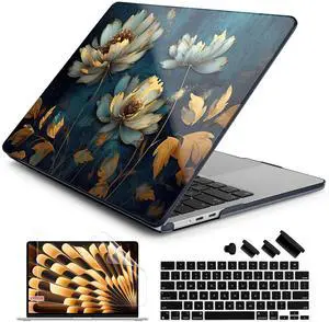 Batianda Premium Case for New MacBook Air 15 inch with M5 M4 M3 M2 Chip 2026 2025 2024 2023 Release, Designed Ultra-Slim Hardshell & Keyboard Cover & Screen Protector 4-in-1 Bundle, Blooming Flowers