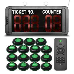 KOQICALL Take a Number Machine Queue Wireless Calling System for Customers with 5 Waterproof Next Call Button 1 Dot-Matrix Display Show Ticket and Counter Number