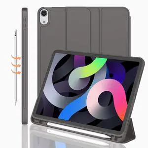 iMieet iPad Air 11 Inch Case M3(2025) / M2 (2024), iPad Air 5th/4th Generation Case 2022/2020 10.9 Inch with Pencil Holder,Trifold Stand Smart Case with Soft TPU Back(Dark Gray