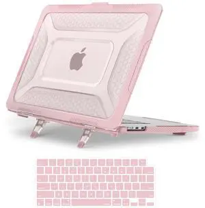MOSISO Compatible with MacBook Air 15 inch Case 2026 2025-2023 M4 A3241 M3 A3114 M2 A2941, Honeycomb Shockproof Heavy Duty TPU Bumper Plastic Hard Case with Fold Kickstand&Keyboard Cover, Pink