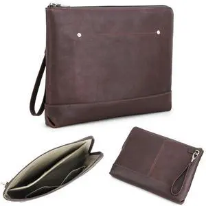 CataPurus Top Grain Leather 14.2" Slim Laptop 90 Zipper Bag, Removable Wristlet & 4 Pockets, Compatible with 2024 MacBook Pro 14.2" M1 M2 M3 M4 Pro/Max A2442 & Other Laptop, Red Coffee 14.2 Inch