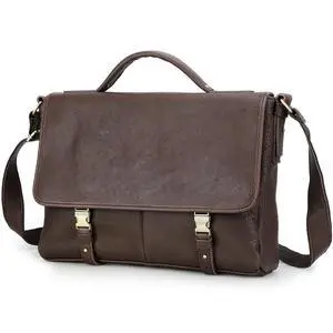 CataPurus Top Grain Litchi Leather 16.2" Laptop Briefcase Crossbody Handbag, Vintage Handmade & Adjustable Strap, Fits to MacBook Pro 16.2" M1 Max 15" Touch Bar 16" Pro & A4/A5 Paper, Coffee 16.2 Inch