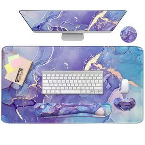 4-in-1 Large Mouse Pad, Keyboard Wrist Rest Pad & Wrist Support Mousepad Set, Extended Desk Pad Waterproof Desk Mat for Home Office Study Game
