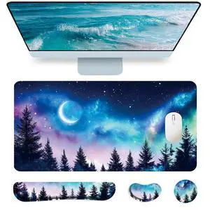 ACRNIGHEET 4 in 1 Large Keyboard Mouse Pad Set,Ergonomic Keyboard Wrist Rest Pad,Wrist Support Mousepad Set,Cup Coaster,Extended Desk Mat for Home Game Women Office Desk Decor Accessories(Night Sky)