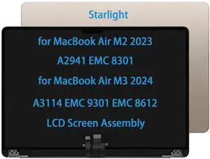 Daplinno 15" Screen Replacement for MacBook Air M2 A2941 EMC 8301 M3 A3114 EMC 9301 EMC 8612 MQKU3LL/A MQKV3LL/A 2023-2024 LCD Screen Display Complete Top Assembly (Starlight)