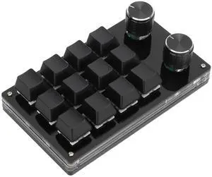 Macro Mechanical Keyboard, Acrylic 12 Keys DIY Programmable Multifunction One Handed Gaming Keyboard Memory Function Portable Plug and Play Mechanical Gaming Keypad with Settable Knob for(Black)