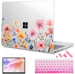 Mektron Case for 13.5" Microsoft Surface Laptop 5/4/3 with Metal Palm Rest Model 1951/1868, 2019/2021/2022 Release Plastic Hard Shell Cover with Screen Protector + Keyboard Cover, Floral P165