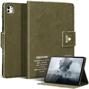 CPNVWA iPad Case for iPad Pro 11 inch (M5/M4) 2025/2024,Military-Grade Shockproof Protection, Canvas Folio Cover with Multi-Angle Stand & Auto Wake/Sleep, Magnetic Closure,Army Green