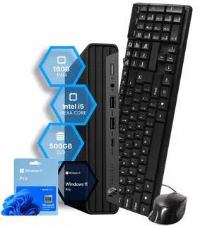 HP ProDesk 600 G6 Mini PC | Intel Core i5 10th Gen Hexa Core | 16GB RAM | 500GB SSD | Windows 11 Pro | WiFi + Bluetooth | Wired Keyboard & Mouse