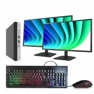 HP ProDesk 600G4 Mini PC | Intel Core i5 8th Gen Hexa Core | 16GB RAM | 1TB SSD | Windows 11 Pro | Dual 24" LCD Monitors | WiFi + Bluetooth | RGB Speaker