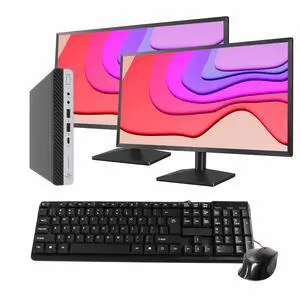 HP ProDesk 600G4 Mini PC | Intel Core i5 8th Gen Hexa Core | 16GB RAM | 500GB SSD | Windows 11 Pro | Dual 24" LCD Monitors | WiFi + Bluetooth | Wired Keyboard & Mouse