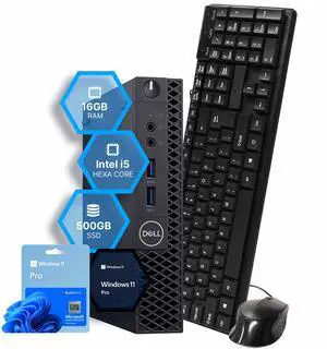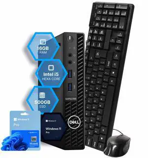 Dell OptiPlex 3060 Mini PC | Intel Core i5 8th Gen Hexa Core | 16GB RAM | 500GB SSD | Windows 11 Pro | WiFi + Bluetooth | Wired Keyboard & Mouse